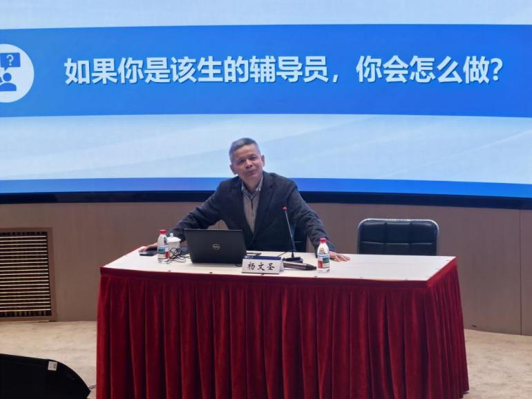 心理健康教育是高校思想政治工作的重要支撑,也是落实立德树人根本任务、培养健全人格时代新人的基础性工程。当前,学生心理问题呈现复杂化、隐蔽化、低龄化趋势,对辅导员在危机情境下的应变能力、沟通能力和专业判断力提出了更高要求。为此,学校特邀上海交通大学心理咨询中心总督导、中国心理学会注册督导师杨文圣副教授担任主讲嘉宾。杨文圣深耕高校心理危机干预领域数十年,具有丰富的临床实践与督导经验。