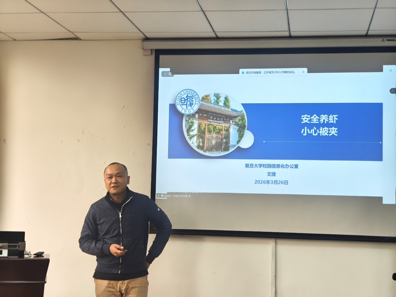 首先,信息办文捷老师率先开展分享,重点讲解了“open claw(小龙虾)”平台的发展背景与使用风险提示。文老师介绍了“小龙虾”的发展背景,工作优势。同时,针对使用中的数据安全、权限管理等潜在风险,老师也进行了详细提醒,明确了操作规范与注意事项,引导老师们安全使用。